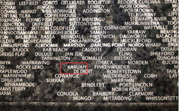 The name of Karuah as displayed on the Australian War Memorial in London.