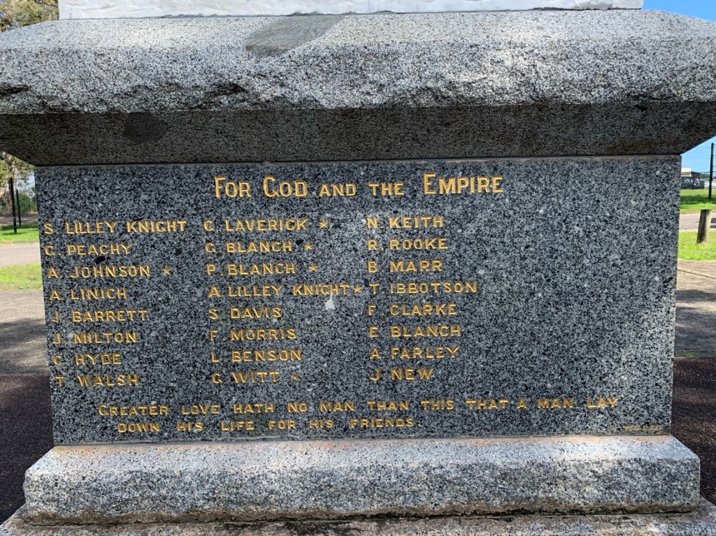 Twenty-four names on the Roll of Honor at Karuah [Author photo]