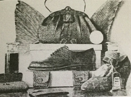 “An interesting address was given by Mr. Caldwell on the shark fishing industry. The boots he was wearing, and his handbag and wallet were made of shark skin.”