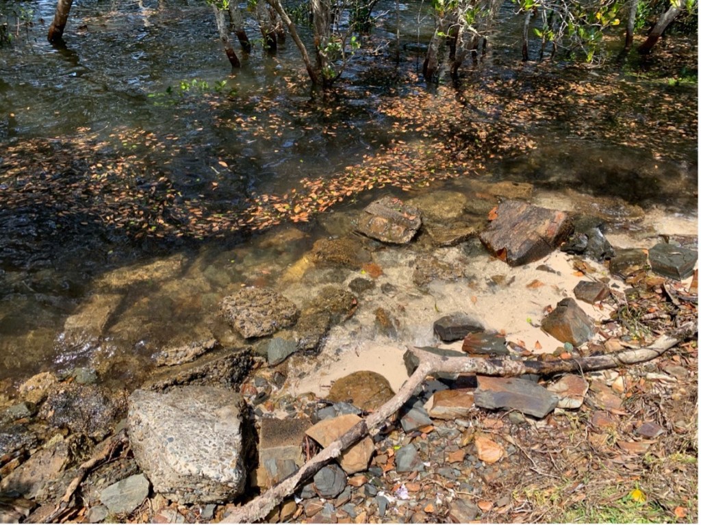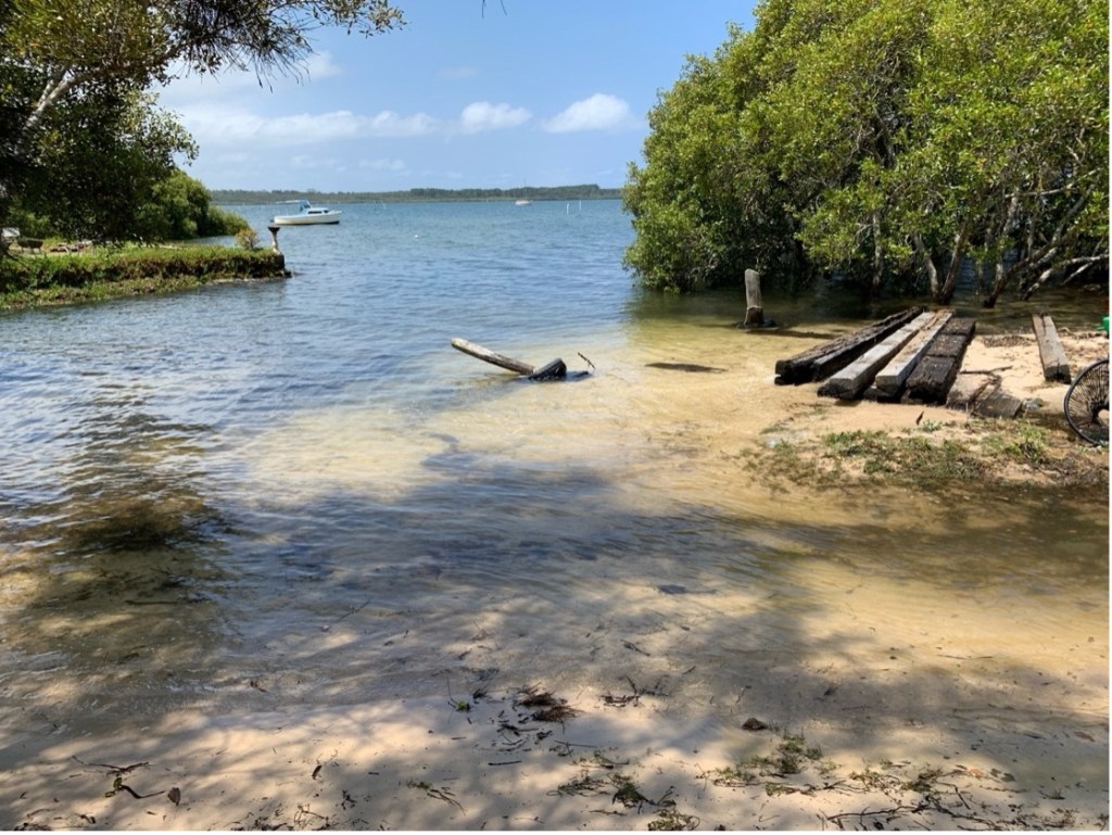 Site now fenced off looking towards Pindimar Bay [Author photo]