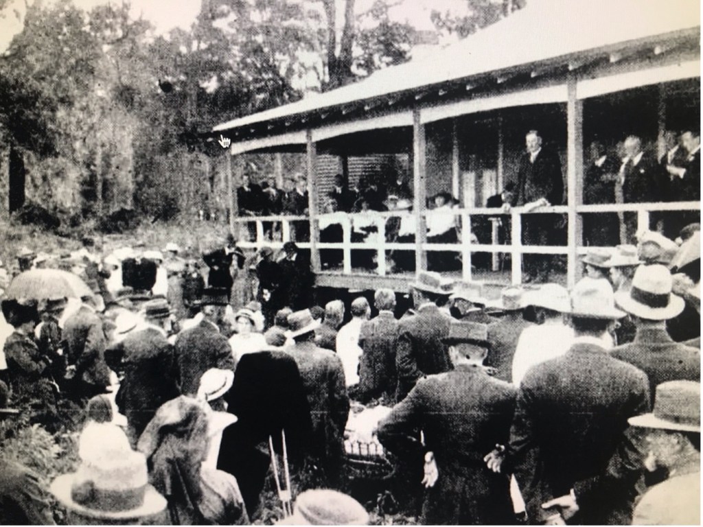 The Newcastle Morning Herald and Miners’ Advocate of 17 November 1917, page 4, provided a full report of the formalities of the banquet given for the Ministerial Party associated with the opening proceedings. The report details concern about the “Great Strike” that had only recently been settled. A day of festivities at Port Stephens must have come as a welcome break for the Government representatives present, to recover from the hard times of the strike, while keeping the matter of the war in mind. The newspaper report provides a summary of the issues and views of the times as held by the Port Stephens citizens: