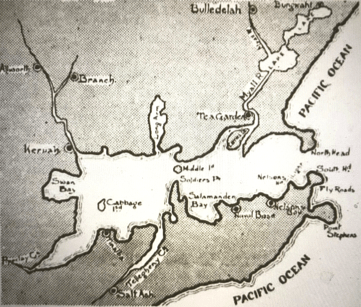 Rough sketch of the various locations visited by James Fulton on his Port Stephens tour – 1914