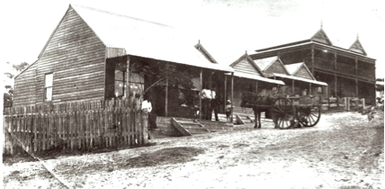 Mrs Lund’s two storey boarding house (top of the hill) at Nelson Bay