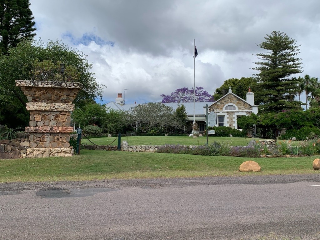 There is much in the immediate surroundings to charm and interest the girls. Tanilba House, which is in close proximity to their camping ground, was built by convicts 100 years ago, and overlooks Meridian Park. To the left is Sunset Park, and in the grounds [of Tanilba House] stands an old warrior-an olive tree 100 years old. The house has been renovated and modernised, but the work of the convicts is still in evidence and in a wonderful state of preservation. The grounds are being made very beautiful. A wishing chair built of stones found on the property is a source of interest to the girls, and is being used as a means of obtaining revenue for the hospital. Sitting on the “Magic Carpet,” one is greeted by “Fortunam ritius reperias quain re-tineas” (you may find fortune more easily than you can retain her). The pergola, constructed of similar stone, is very artistic, and was constructed by Mr. Powe. Adjoining the house is the gaol, a tiny structure about 7ft. square, where in olden times 30 or 40 convicts were imprisoned together. A large brass bell from the training ship, s.s. Sobraon, which bears the date 1866, is in a wonderful state of preservation, and still rings clearly.