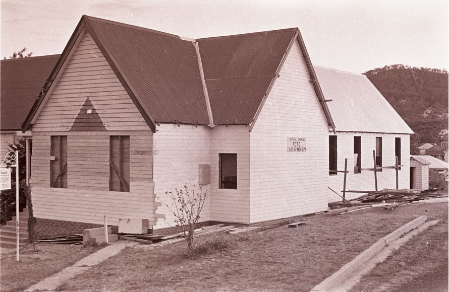 ‘Steep increase in Sunday school enrolments at Nelson Bay in the Raymond Terrace Circuit necessitated some additions to the existing small church. The enrolment had grown to over 90 scholars with a teaching staff of 14 many of whom were compelled to teach in the open air. The present minister, the Rev. D. E. Pickering, during whose term with us two other new churches had been built at Millers Forest and Soldiers Point, called us to face the challenge of present and future needs, and although this scheme involved an expenditure of over £2,000 we responded to his call. As a result, a lovely new church has been erected adjoining the old building which itself was extended by 10 feet, and will now be used as a Sunday school hall, with a small kitchen attached for social needs.