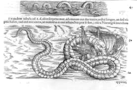 A sea serpent as imagined in Europe during the 17th century.