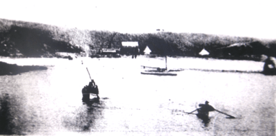 On Monday we started for the island, with the stores and men; got comfortably into Esmeralda Bay, which face the south-east. Fortunately, the sea was comparatively smooth, or we could not have gone in, and we brought up at anchor at the end of the bay. …..