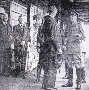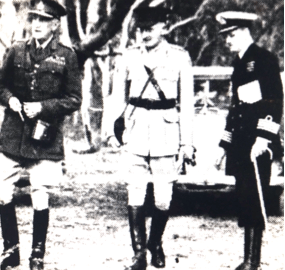 The Governor-General, Lord Gowrie with Sir Ernest Squires and Captain Bracegirdle, at early morning manoeuvres at Port Stephens. [Northern Star, 11 October 1938, page 1]