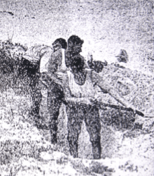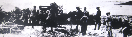 Casualties were numerous: stretcher bearers were frequently called to attend to the casualties in the defenders’ ranks. The invaders, after finding it impossible to land a strong force, returned to the transports, but were exposed to the bombing planes which were circling overhead, but anti-aircraft guns were assumed to be on the cruised convoys of the enemy and the aeroplanes had to rise into a cloud bank out of range. Still determined to land men, this tenacious enemy sent other pinnaces draw-lag boat loads of troops towards the beach. It was a disastrous move.