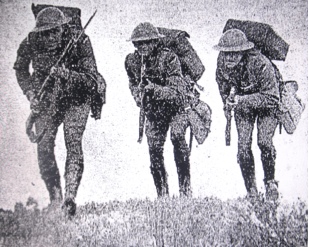 The Brigade Signal Section and the 8th Field Ambulance took a leading part in the manoeuvres. The signal section had wired the road from brigade headquarters and had connected every point by wires running through the bush. Gun positions were wired. There was a wire running from the gums to the horse lines five miles away, while the aerodrome at Newcastle was in constant touch with brigade headquarters by wire. A steel pick attached to a strand of barbed wire was one gas alarm. Tapped with a hammer, its ring reached through the bush. “Gas Over” was the alarm that the ringing pick sounded. Immediately troops in the area donned their gas masks, which were carried in small bags fastened to the front of tunics. Like monsters from another world the troops looked in those grotesque masks.