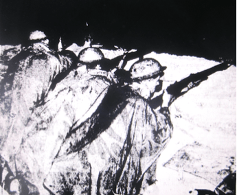 Troops defend the coast against an imaginary invader at dawn [Sydney Morning Herald, 8 October 1938, page 14]