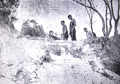 Digging on a sand dune at Fingal Bay (False Bay) [Newcastle Morning Herald and Miners’ Advocate, 7 October 1938, page 11]