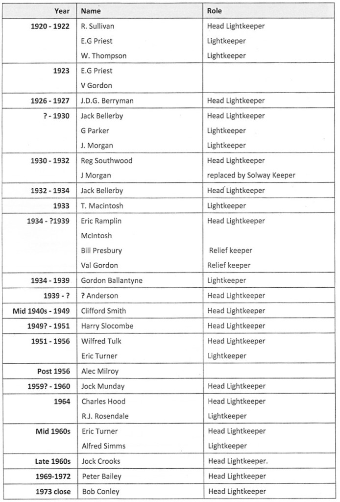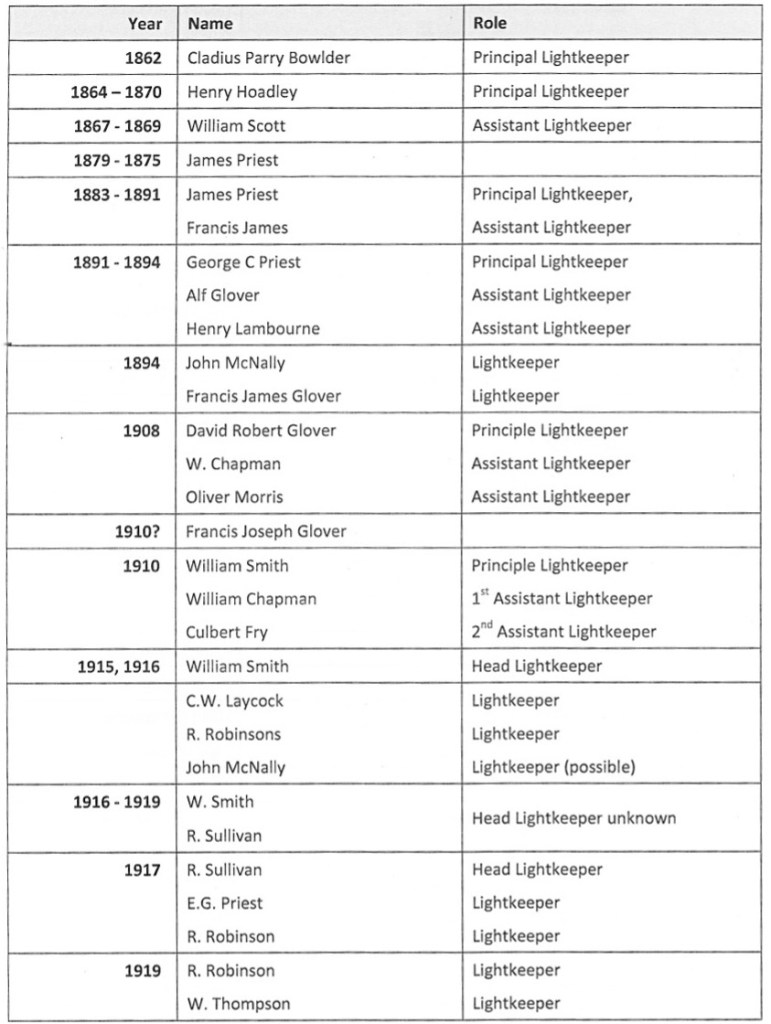 List of Lighthouse Keepers – 1862 to 1973
