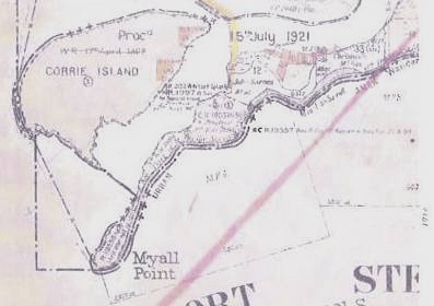An early map of Myall Point, at the end of the Myall River, to the east of the North Head of Port Stephens [Yacaaba]. Due to erosion, Myall Point is no longer a prominent feature in the Port.