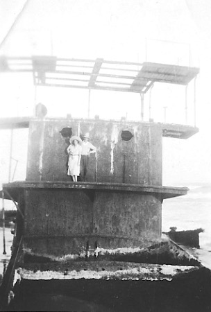 Two sightseers standing on the rapidly disintegrating ‘Uralla’ that was stranded on the beach