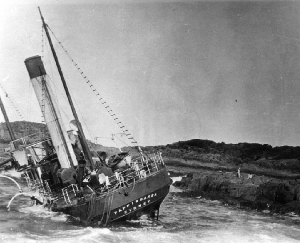 The Pappinbarra was owned by the N. Cains Coastal Steamship Company and was a sister ship to the SS Uralla which foundered near Morna Point, south of Port Stephens, the previous year in 1928.