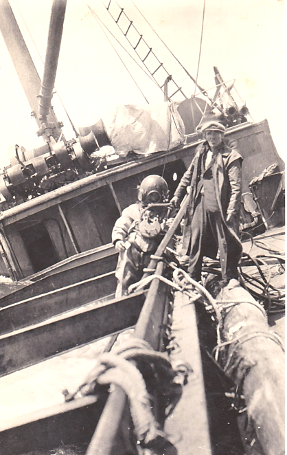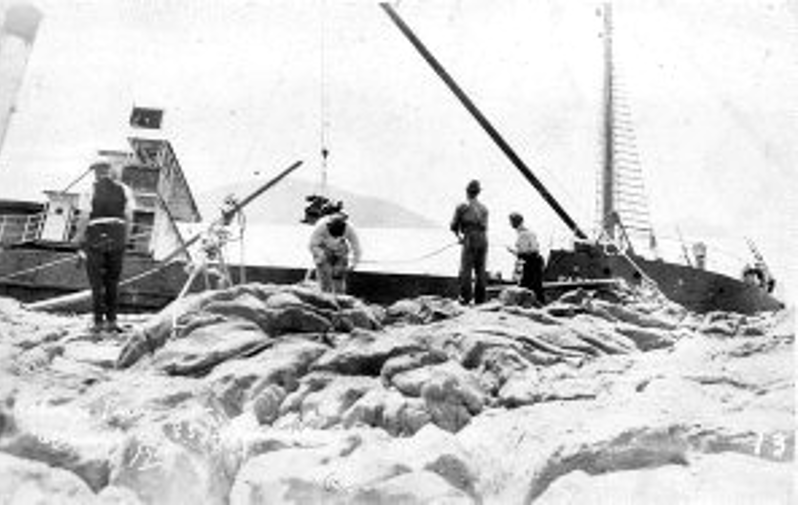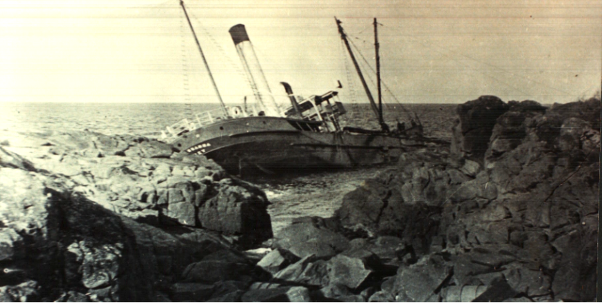 While the motor launch belonging to the party was manoeuvring to get some salvage gear aboard the steamer its engine stopped, and the launch was immediately caught by the waves and thrown against the rocks of Point Stephens.