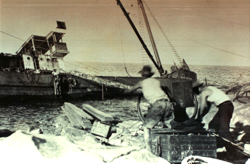 With rope bound tightly round his waist, he got ashore on an upturned boat, which had been torn by the gale from its davits, and made a line fast to the lighthouse shore [at Point Stephens]. A block and tackle was rigged, and on this the rest of the crew and the captain got ashore.