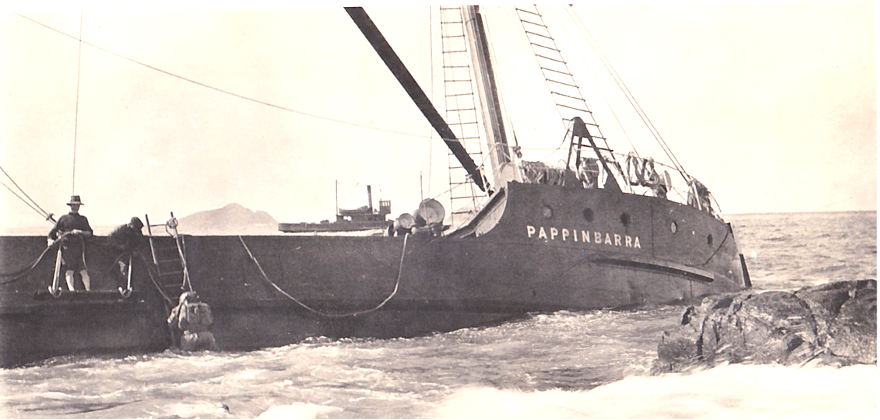 ‘Acting on favourable reports from a diver, an attempt will shortly be made to refloat the coastal steamer Pappinbarra, which became stranded off the rocks of Port Stephens in the height of last week’s gale. With complete salvage gear and a party of men, Captain Stobo left for the scene of the wreck this week, and a tug or a small steamer will be despatched to assist the vessel off the rocks. If the attempt to refloat the Pappinbarra is unsuccessful, she will be sold at auction.’