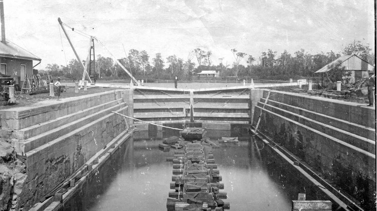Rileys Hill Dry Dock on the bank of Richmond River, where the Oakland was taken for temporary repair.