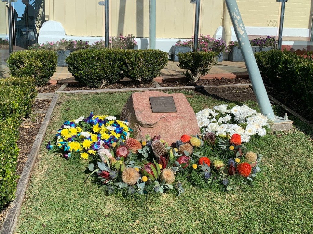 Floral tributes left at the Memorial site after the ceremony on 24 May 2021 [Author Photo]