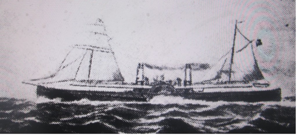 Sitting there on her bow, a desire came to know more of the vessel’s early history, and an old issue of the “Illustrated London News,” dated April 28, 1883, gave construction details, which briefly are: — Length, 220ft; breadth, 23ft; depth, 18ft. She was equipped with paddles driven by compound diagonal oscillating engines of 1000 horsepower, and on her trials exceeded a speed of 17 miles per hour, a speed that even the newest boats would do well to equal.