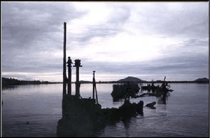 Hulk of the Brighton Ferry, 1999 [The Maritime Archaeology of Myall Lakes / Tea Gardens: Area Conservation Plan. Heritage Office, June 1999]