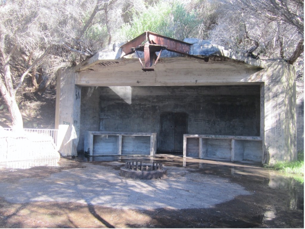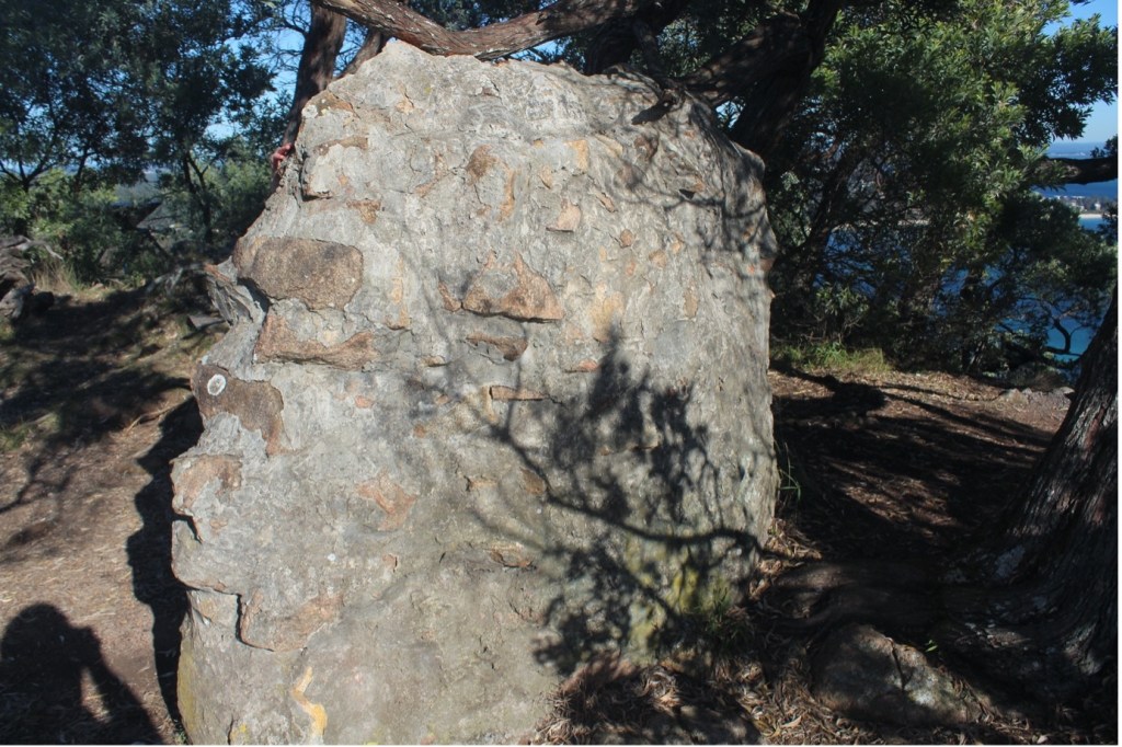 Remains of the camouflaged base of the former radar installation on the summit of Mount Tomaree [Author photo, July 2023].