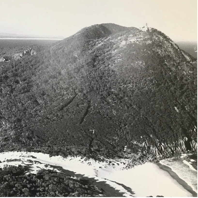 Mount Tomaree with the military buildings at the base and the radar station on the summit [circa 1942]