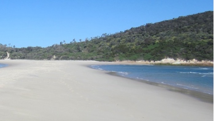 Sand spit connecting Fingal Island with Fingal Beach, Port Stephens [Author photo]