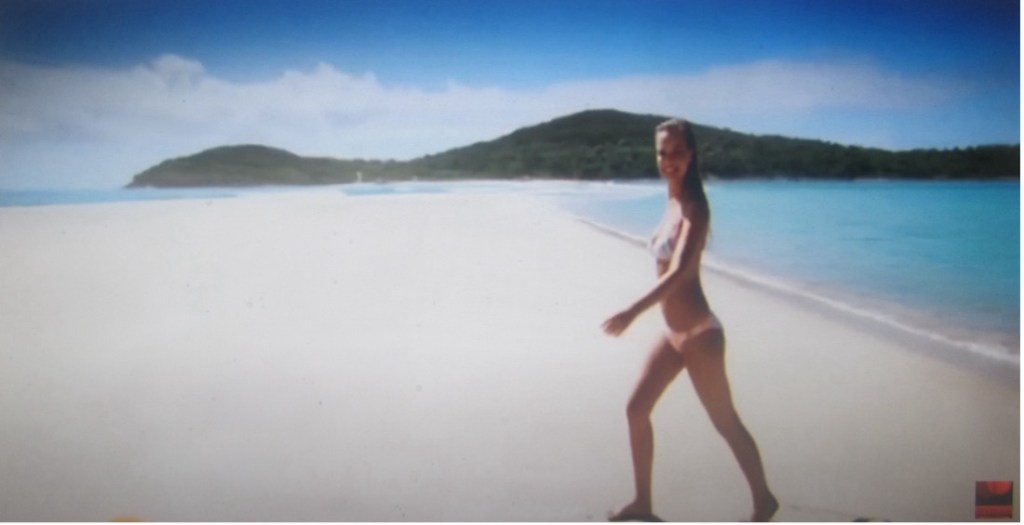 The commercial ends with Lara Bingle stepping out of the ocean and onto the sand spit asking, “So Where the Bloody Hell Are You?”