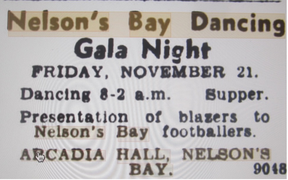 Using the resources of the National Library’s Trove newspaper collection, this paper looks at the functions held at Arcadia Hall, to provide an insight into the social life enjoyed by early residents of the Nelson Bay area.