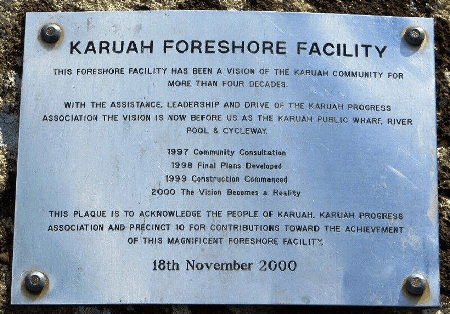 The site of the current Karuah public wharf, river pool and cycleway is on the southern side of the Karuah Bridge in Longworth Park.