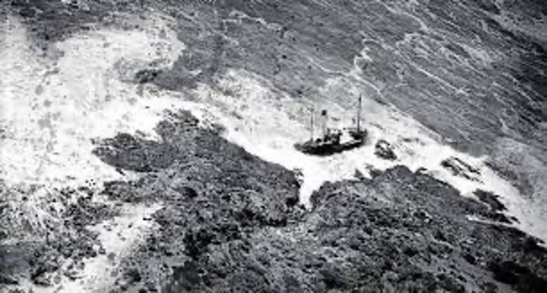 The wreck site of the Pappinbarra in 1929, close to ‘Shelley’ on Fingal Island where Arthur Murdoch commenced sand grit operations