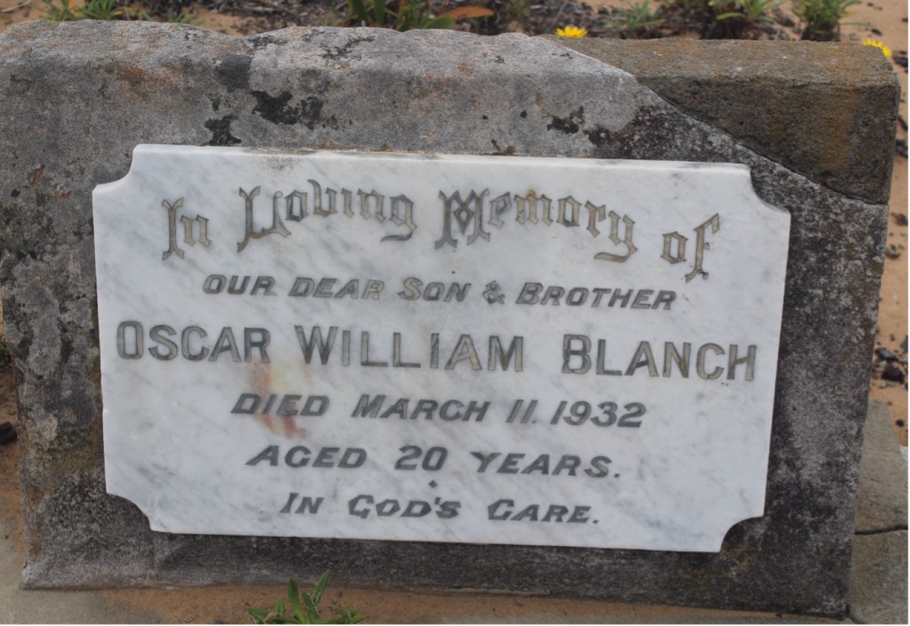‘The deepest gloom was cast over this locality when it became known that Oscar F. Robinson, one of our most highly respected residents, had passed away on Friday, 8th inst., in the Newcastle Hospital, at the early age of 38 years, after an illness of only a week. The deceased took suddenly ill, and medical aid was summoned. The sufferer was removed to Newcastle hospital, where an operation was performed immediately, but the case was regarded as hopeless, and the patient passed away at 1 a.m., the cause of death being acute appendicitis. The remains were conveyed to Anna Bay, to the residence of deceased’s parents, and thence to the Anna Bay cemetery, where the burial took place.
