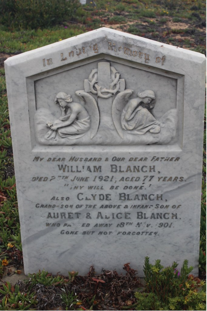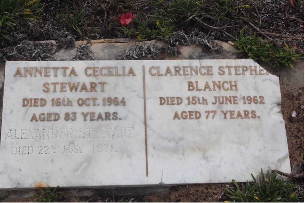 Headstone of Clarence Stephen Blanch, Annetta Cecelia Stewart and Alexander Srewart [Author photo]