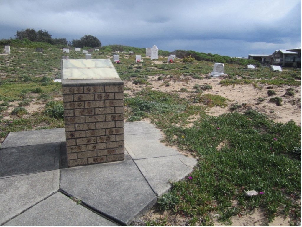 Section of the Birubi Point Cemetery showing the location of the plinth [Author photo]