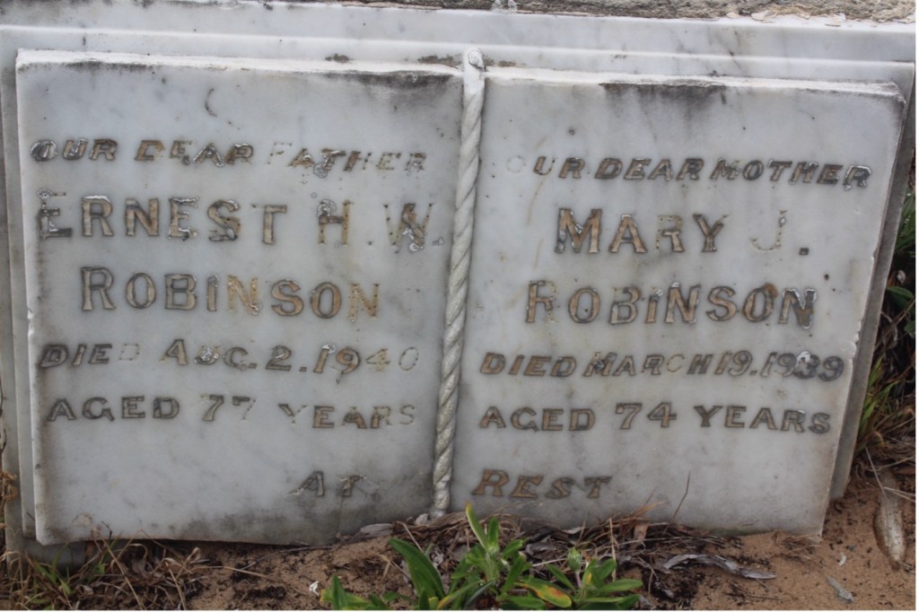 Headstone of Magnus Robinson and Nellie Robinson [Author photo]