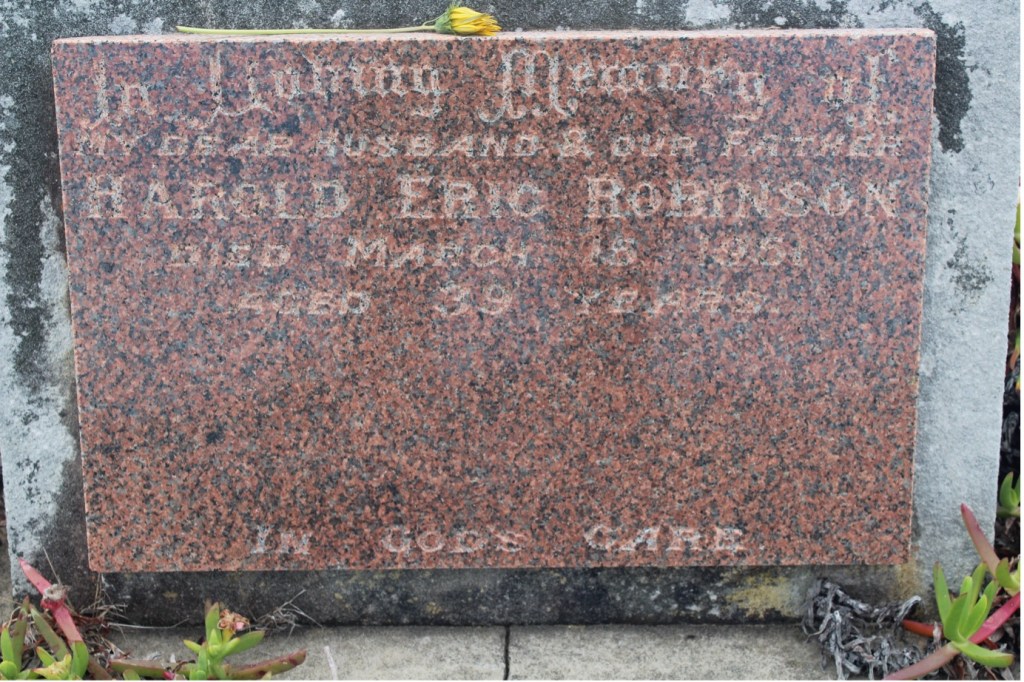 ‘The remains of the late Magnus Robinson, dearly beloved Husband of Nellie May, and Father of Joyce, Jack, Don and Mavis, were interred in Anna Bay Cemetery yesterday, August 16, 1943. Jonah Bevan & Son, Funeral Directors.’