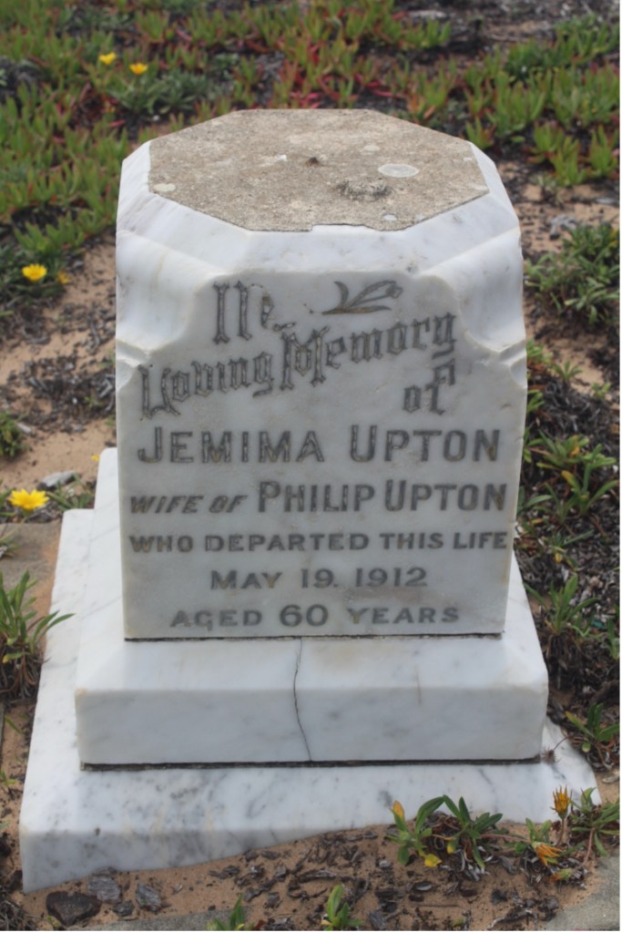 ‘May 19, 1912, at Sydney hospital, Jemima, beloved wife of Philip Upton, of Anna Bay, in her 61st year.’