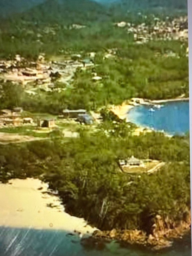 The top left half of the photo, circa 1970s, shows the remnants of the former military camp and later migrant hostel. The lower left half of the photo shows the construction of apartment buildings in the Radburn Estate in the Little Beach area of Nelson Bay, adjacent to the Inner Lighthouse ( in the foreground).