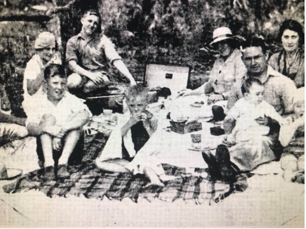 This group at Nelson’s Bay is typical of the countless picnic parties that welcomed the new year in a true Australian manner, 1936.