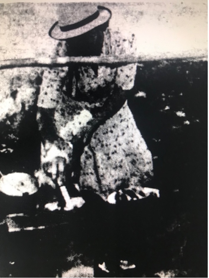 Mrs. E. O’Neill, of Mayfield, had no “real” cooking problem compared with other campers at Nelson’s Bay. Her camp was prepared for wet weather, and the fireplace was covered with a roof of galvanised iron.