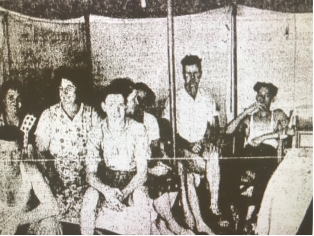 Some of the campers who gathered to discuss Port Stephen’s Council’s prohibition on camping along the water frontage at Nelson’s Bay, December 1946.