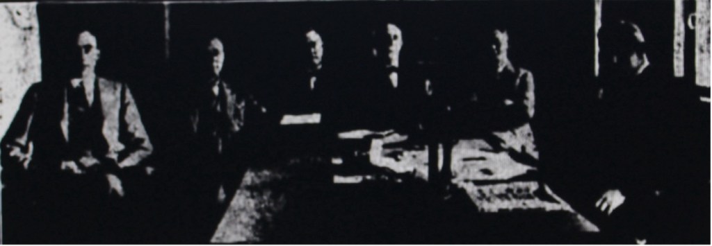 The deputation from the Sydney branch of the Port Stephens Development League who waited on the Acting Minister for Defence, Mr. Marr [Newcastle Sun, 15 August 1928, page 8]