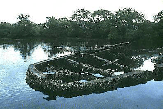 Hulk of the Iluka, opposite Tea Gardens, Port Stephens [The Maritime Archaeology of Myall Lakes / Tea Gardens: Area Conservation Plan. Heritage Office, June 1999]