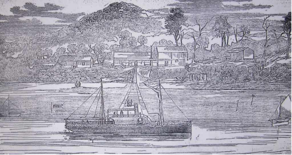 A few fishermen’s huts, scattered along the shores of Nelson’s Bay, next came in view. Arriving off the Company’s newly erected works, situated at the far end of this sandy bight, we ran alongside the long jetty. Mr. Huntly, the manager (the same gentleman who in a similar capacity contributed largely towards making the Coffee Palace [in Sydney] the success it is) was standing on the end of the wharf when we made fast.