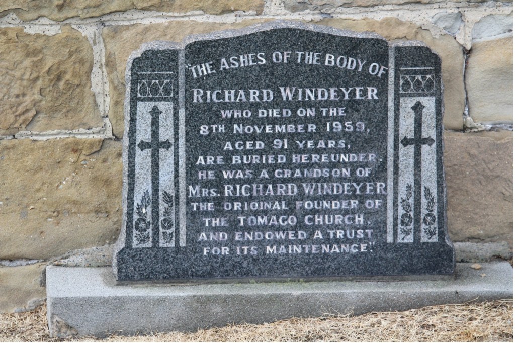 The Rev. W. S. Chaseling, welcomed the chairman of the district, Rev. C. L. Connor and the Secretary, Rev. A. M. Sanders. He also apologised for the absence through illness of Mr. Windeyer. The service was conducted by Rev. Connor assisted by the Revs. Sanders and Chaseling. Mr. J. K. Windeyer, a grandson of the builder of the church sang a solo. On the walls are family memorials, one of which says, ‘This church was built by Mrs Richard Windeyer and her sister Miss Camfield, A.D. 1861; was renovated in 1879, in loving remembrance of Mrs. Richard Windeyer by the people of Tomago, amongst whom she spent her years of widowhood.” There are six memorial windows in the church, one being for Richard Windeyer and another for Sir William Windeyer, who died in 1897. Lady Windeyer died in 1912. Every child of the family has been christened in the church.’
