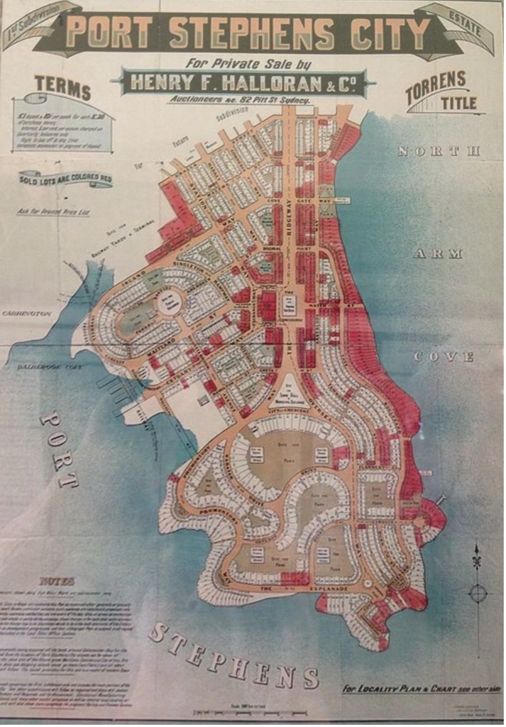 Although the North Arm Cove area was still being advertised in 1928, the above factors put paid to the Port Stephens City development.