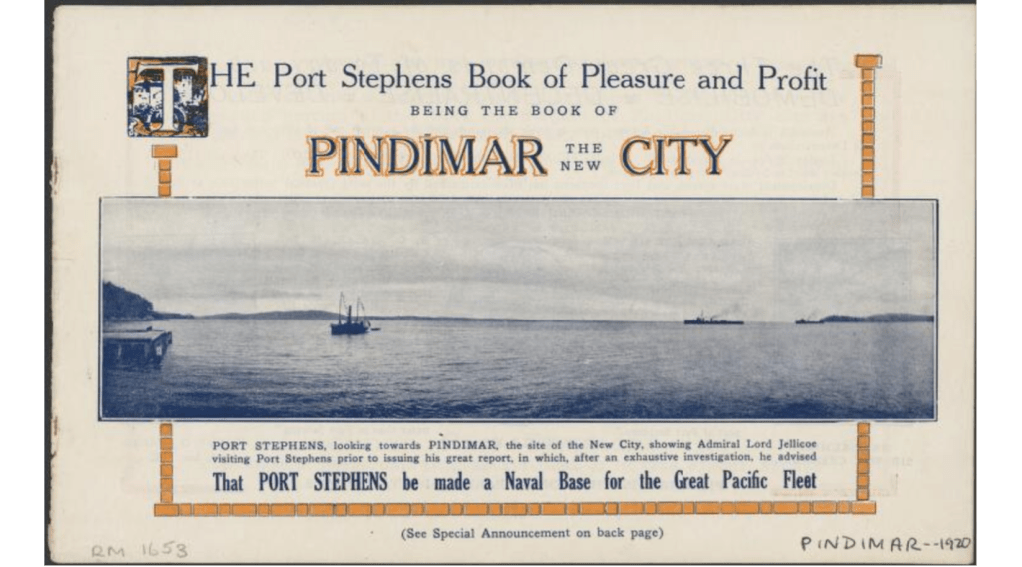 The largest proposed development on the northern shore of Port Stephens was Pindimar City under the auspices of Pindimar Port Stephens Ltd. Marketing of the estate began in earnest in 1920.